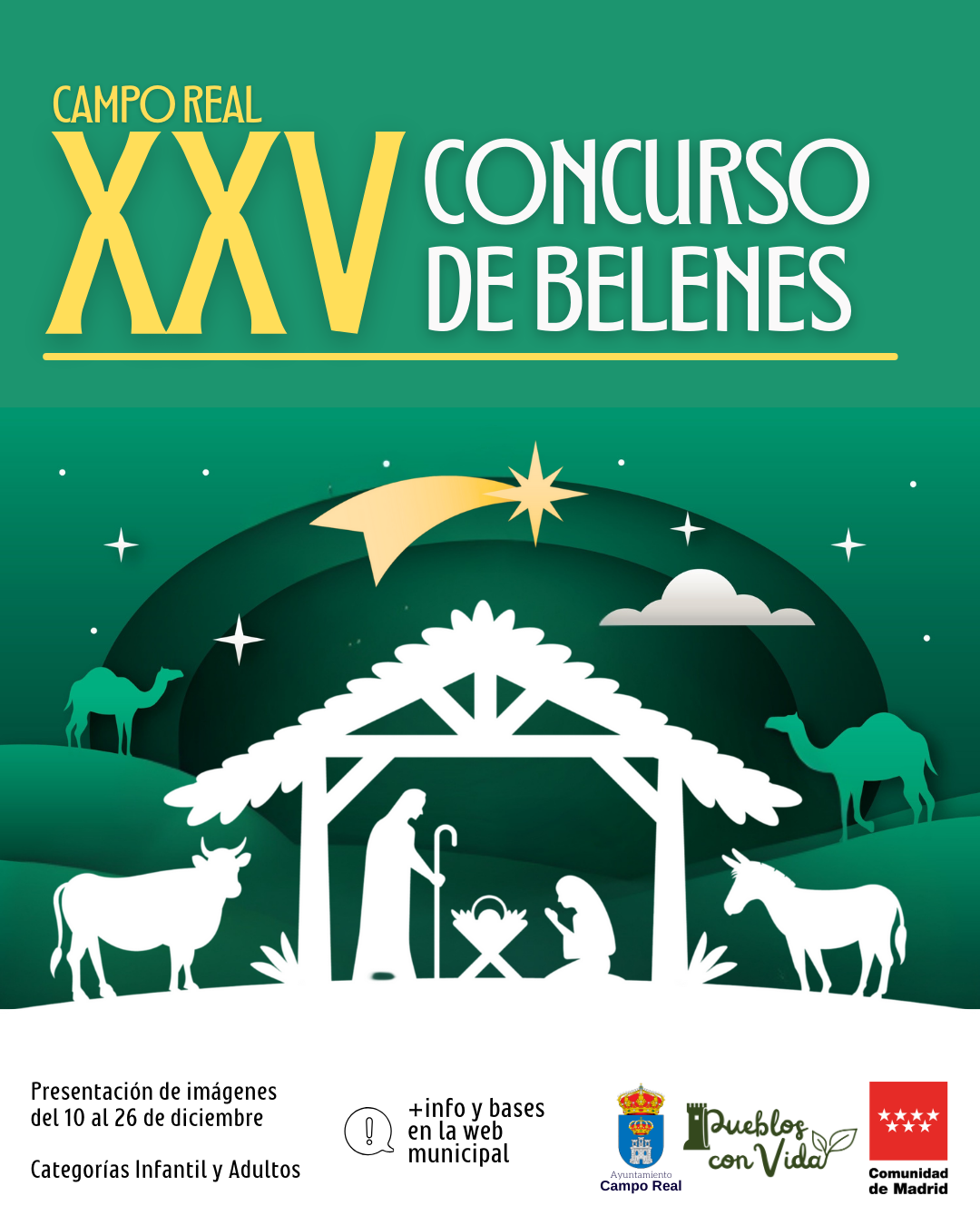 La mula, el buey, la estrella fugaz y, como no, ¡el Niño Jesús y los pastores! Saca tus figuritas del armario porque llega la XXV edición del Concurso de Belenes de Campo Real con categorías para niños y adultos.